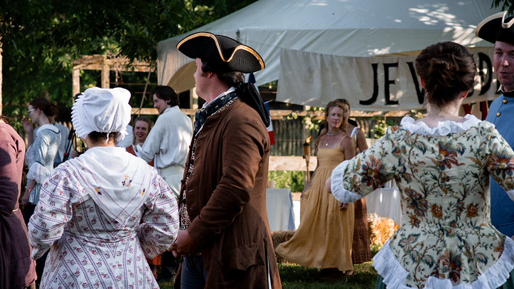 After the day’s military demonstrations and historical activities conclude, the U.S. 250 celebration continues with an authentic 18th-century dance social on Saturday evening. Step back in time as a live period band fills the air with the melodies that animated Revolutionary-era gatherings—reels, jigs, minuets, and contra dances that brought together soldiers, settlers, and townspeople across the frontier. A professional dance caller guides participants through each dance, calling out steps and formations so that even first-timers can join the fun. No dance experience necessary—these are community dances designed for participation rather than performance, where learning the steps becomes part of the evening’s enjoyment.